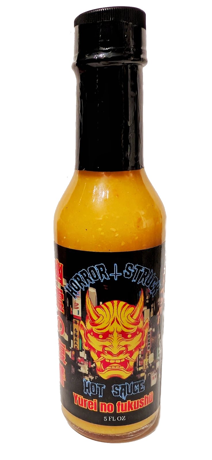 A flavor matched by its passion for revenge, this sauce's spirit lingers on the palate Pear, miso, tamari, toasted sesame, ghost peppers and jalapeno. Yūrei no fukushū will continue to haunt you with an intense heat.